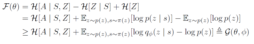 - 본 논문의 objective는, skill이 agent가 visit하는 state를 제어해야만 하는 아이디어를 인코딩하기 위해 skills와 states간의 상호 정보( I(A;Z) )를 최대화한다.