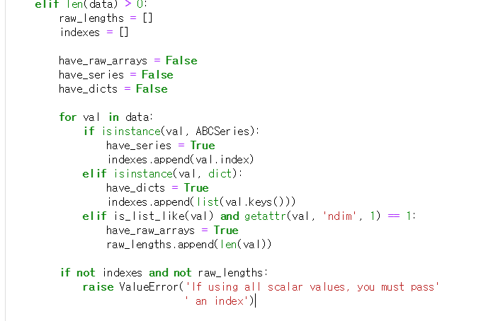pandas 패키지에 에러 부분을 확인해 보았더니 저렇게 나오길래 아래처럼 테스트 해봤다.