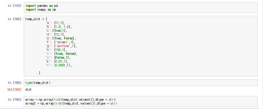 그 다음, np.array를 이용해 dict의 value들만 가져와 array로 변환하는 과정에서
