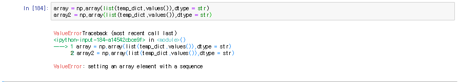 Dict to numpy 하는 과정에서 생긴 에러.