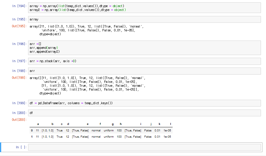 numpy로 값 쌓고 df로 변경하는 과정