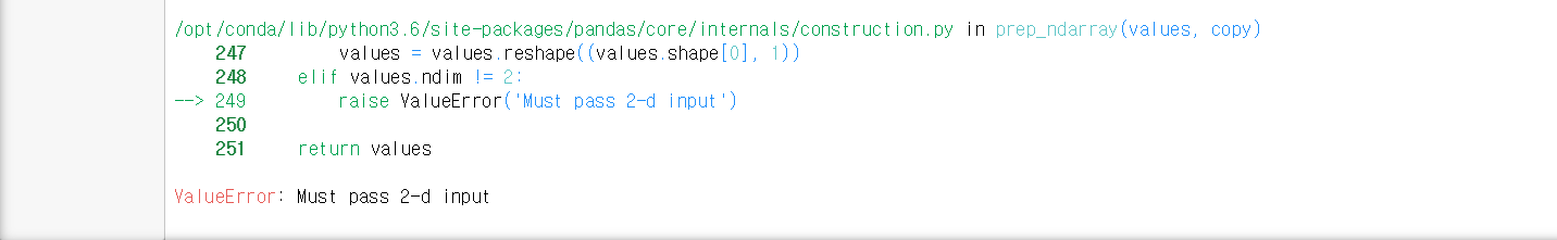 ValueError : Must pass 2-d Input 에러 발견