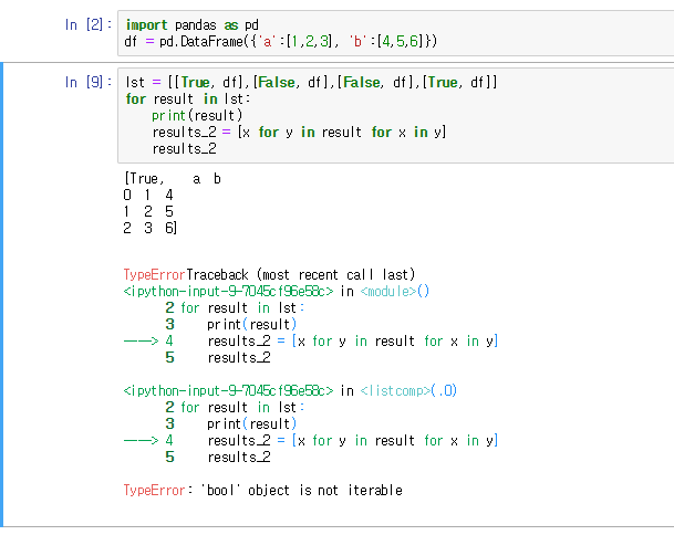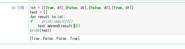 boolean이 들어있는 list에서 값을 뽑아오려니 bool object는 iterable하지 않다는 에러 발생