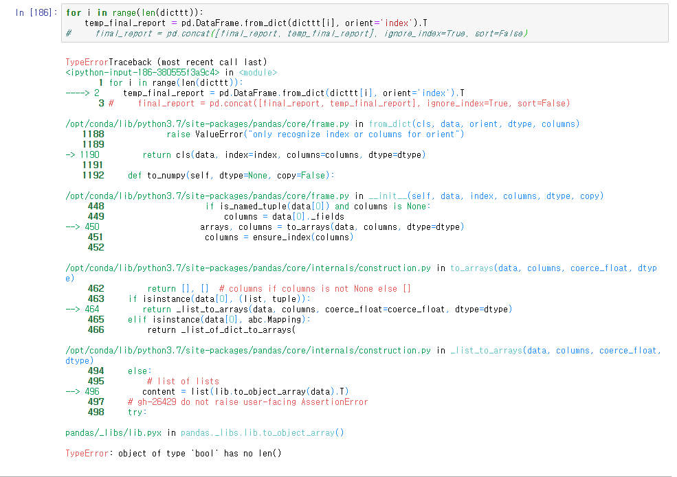 dict을 굳이 굳이 pd.DataFrame.from_dict을 이용해 DataFrame으로 바꾸려다가 난 에러